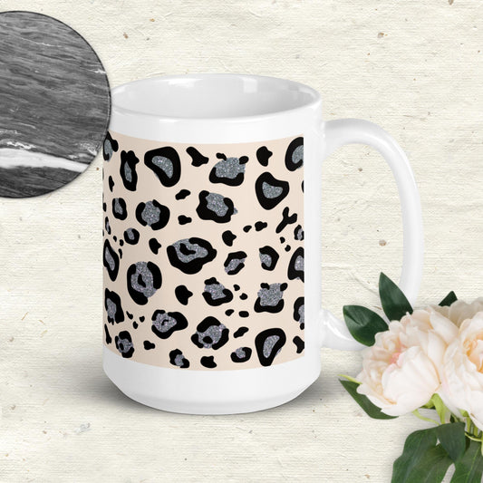 White glossy mug - Leopard print