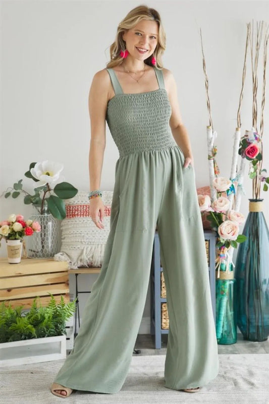 ADORA Smocking Top Wide Leg Jumpsuit
