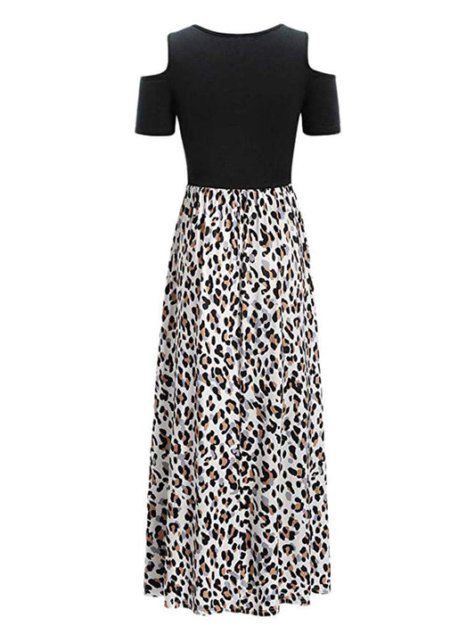 Leopard Round Neck Cold Shoulder Dress